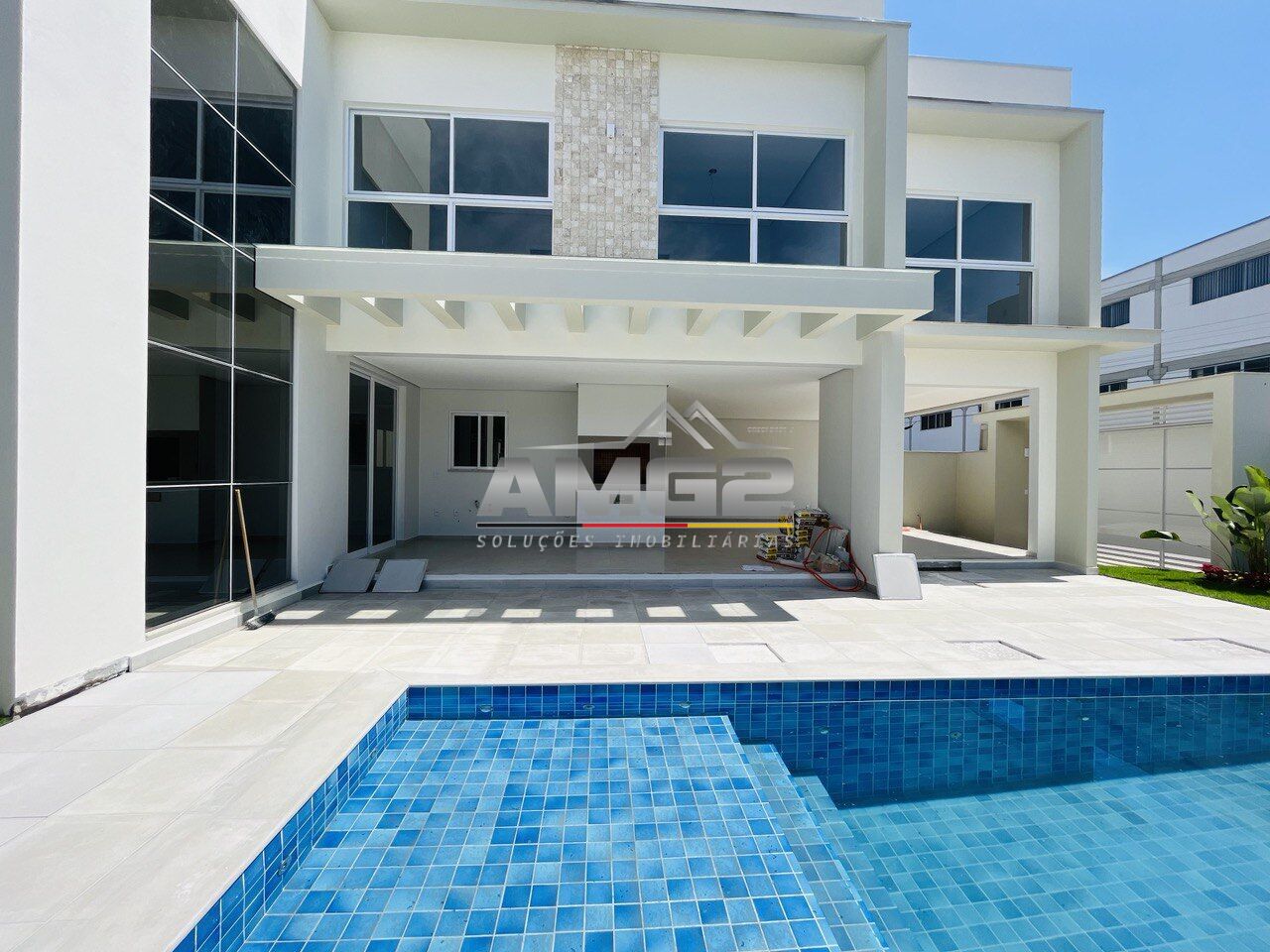 Área de festa com piscina.